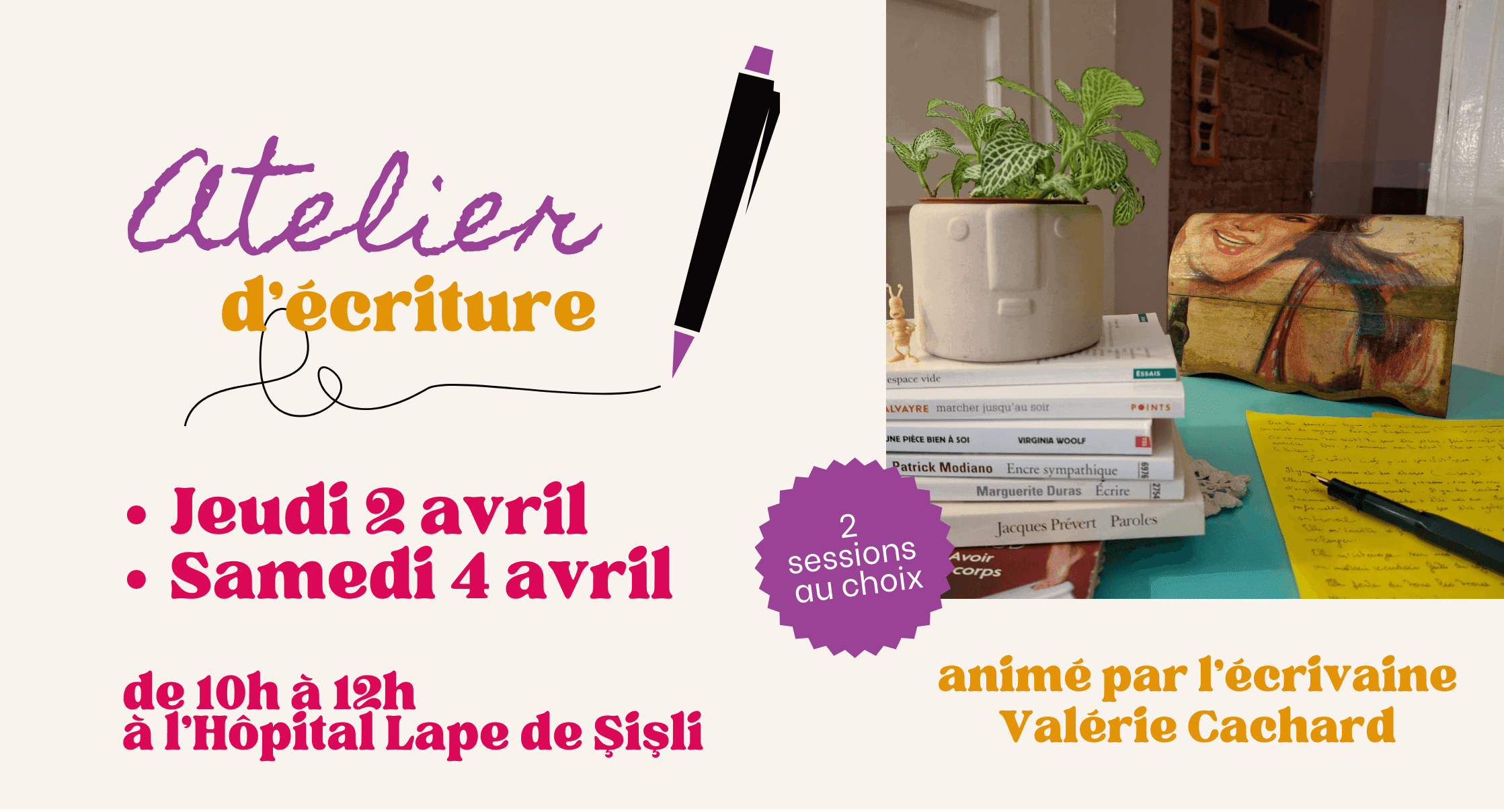 Home Events Atelier d’écriture Atelier d’écriture Réservé à nos membres Istanbul AccueilPour en découvrir plus sur cet événement et vous y inscrire, connectez-vous avec vos identifiants. Vous pouvez également consulter notre dernière newsletter. + Ajouter à mon Agenda Google + iCal / Outlook export L'événement est terminé. Date 02 Avr 2026 Expired! Heure 10:00 AM Catégorie Evenements Partagez cet événement