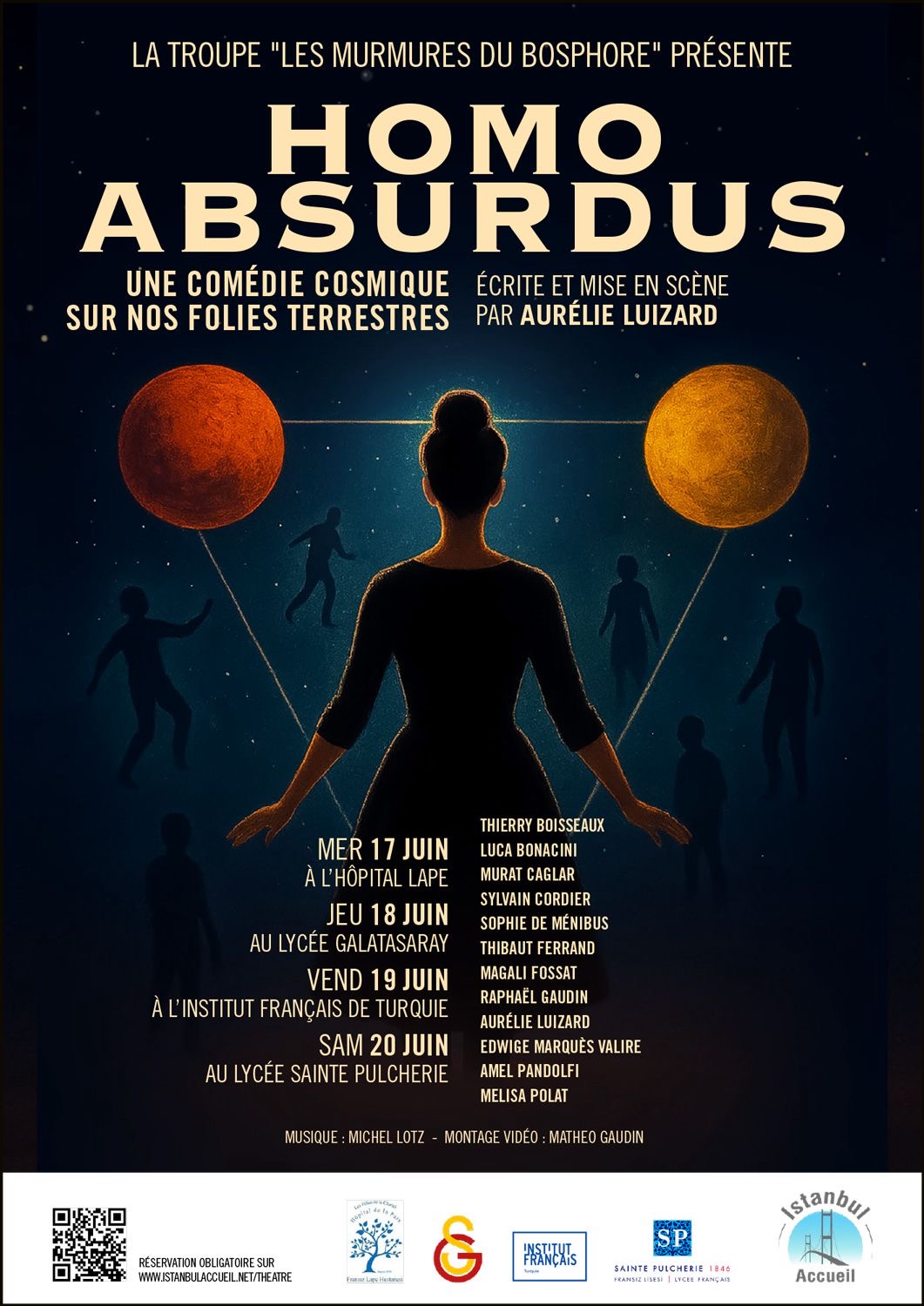 Imaginée, écrite et mise en scène par Aurélie Luizard, également comédienne dans la pièce, cette œuvre satirique s’annonce comme un moment fort de la saison culturelle. Diplômée du Studio de Théâtre et Cinéma Alain de Bock à Paris, elle insuffle à ce projet une exigence artistique alliée à une énergie collective remarquable. À ses côtés, les 12 comédiens bénévoles de la troupe « Les Murmures du Bosphore », créée spécialement pour l’occasion, donnent vie à cette fresque engagée et mordante. L’accompagnement musical, lui aussi original, est signé par Michel Lotz, un autre adhérent de l’association, faisant de cette œuvre une véritable création artistique francophone.